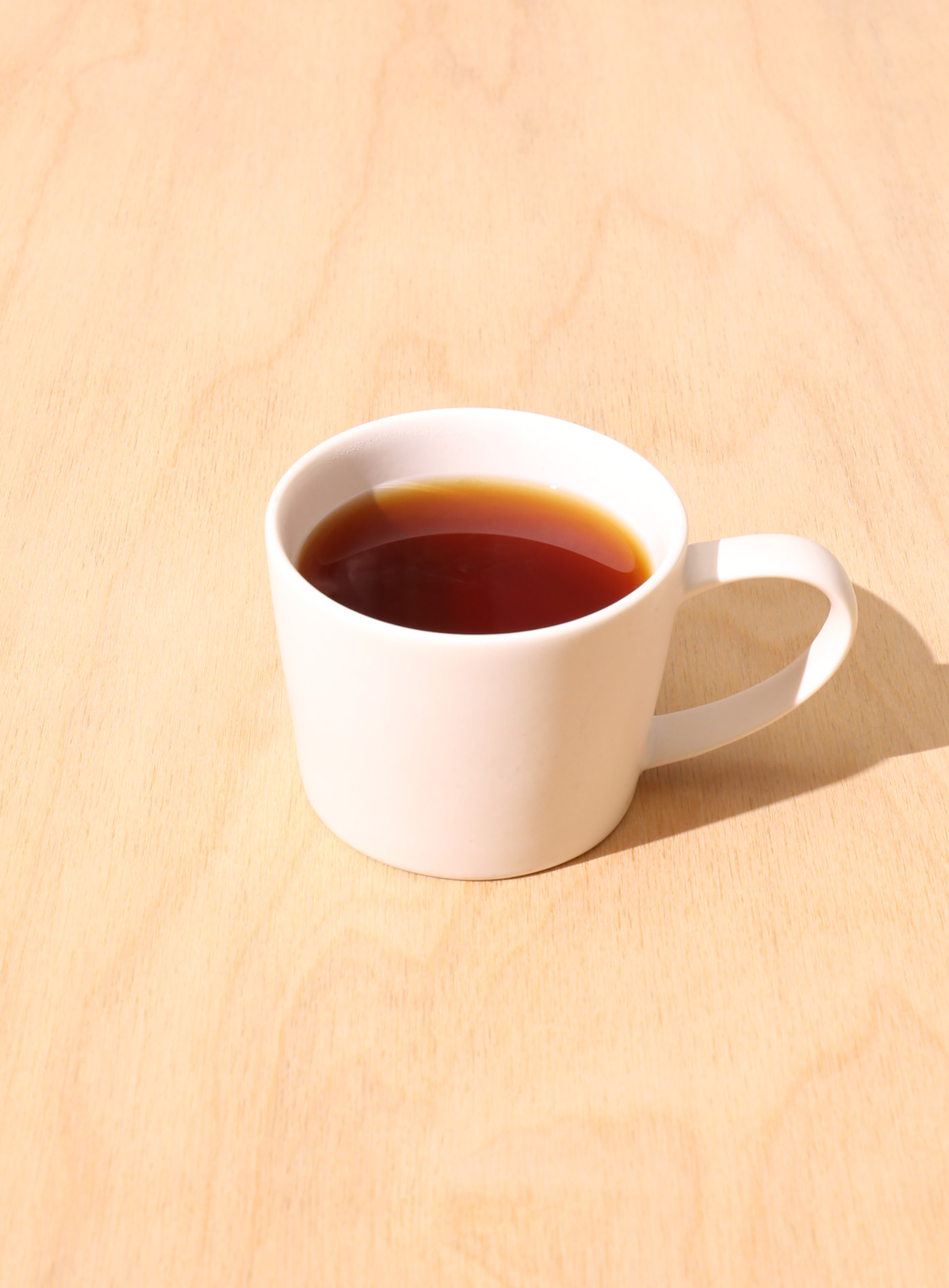お湯で割ると、甘いチャイティーに。スパイスと甘さをしっかり感じられるので、ちょっとしたお茶休憩には、半量(シロップ20ml・お湯80ml)でも満足な1杯です。